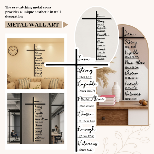 Förhöj ditt utrymme med denna vackert utformade väggkonst i metall med en detaljerad Jesus-krucifixdesign och meningsfulla bibelverser. Perfekt för att ge ditt hem en touch av tro och vördnad, fungerar detta verk som både en fantastisk dekorativ accent och ett kraftfullt uttalande om tro. Oavsett om det visas i ditt vardagsrum, sovrum eller bönehörna, inspirerar det till frid och reflektion dagligen.